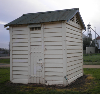 Historic portable police lockup relocated to St James Recreation Reserve in 2012 from rear of property on Lake Rowan Road which had been a police station. The lockup was originally at Lake Rowan, but had been moved to St James by October 1884 when it was mentioned in a newspaper article about a destructive tornado which damaged many buildings in the new town. It recorded even the lockup lost its roof which terrified the detained prisoner (taken from St James 1988 by Beryl Ilsley).