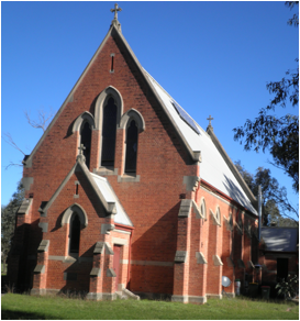 A timber church was built on land made available by Mark Trainor. In a farming community where a town hadnÕt developed the precise location of their church wouldnÕt have been critical. The offer of free land would have been a decisive factor. It seems by chance this church land happened to be at the southern end of the future town, which was fortuitous. In 1882 Mark Trainor died and willed the land to the church and a new brick church was built, opening 1883 and named St Marks. As the parishioners grew in numbers, a larger church was necessary and a new church, built by Italians, was opened in 1912. Today the building is a private residence.